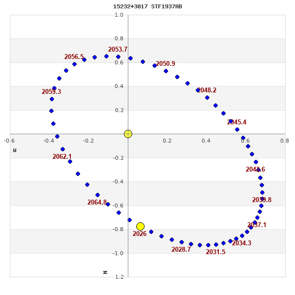 16H 01M 49.70S +14° 36' 49.5" P.A. 64 SEP 4.2 MAG 10.20,11.20